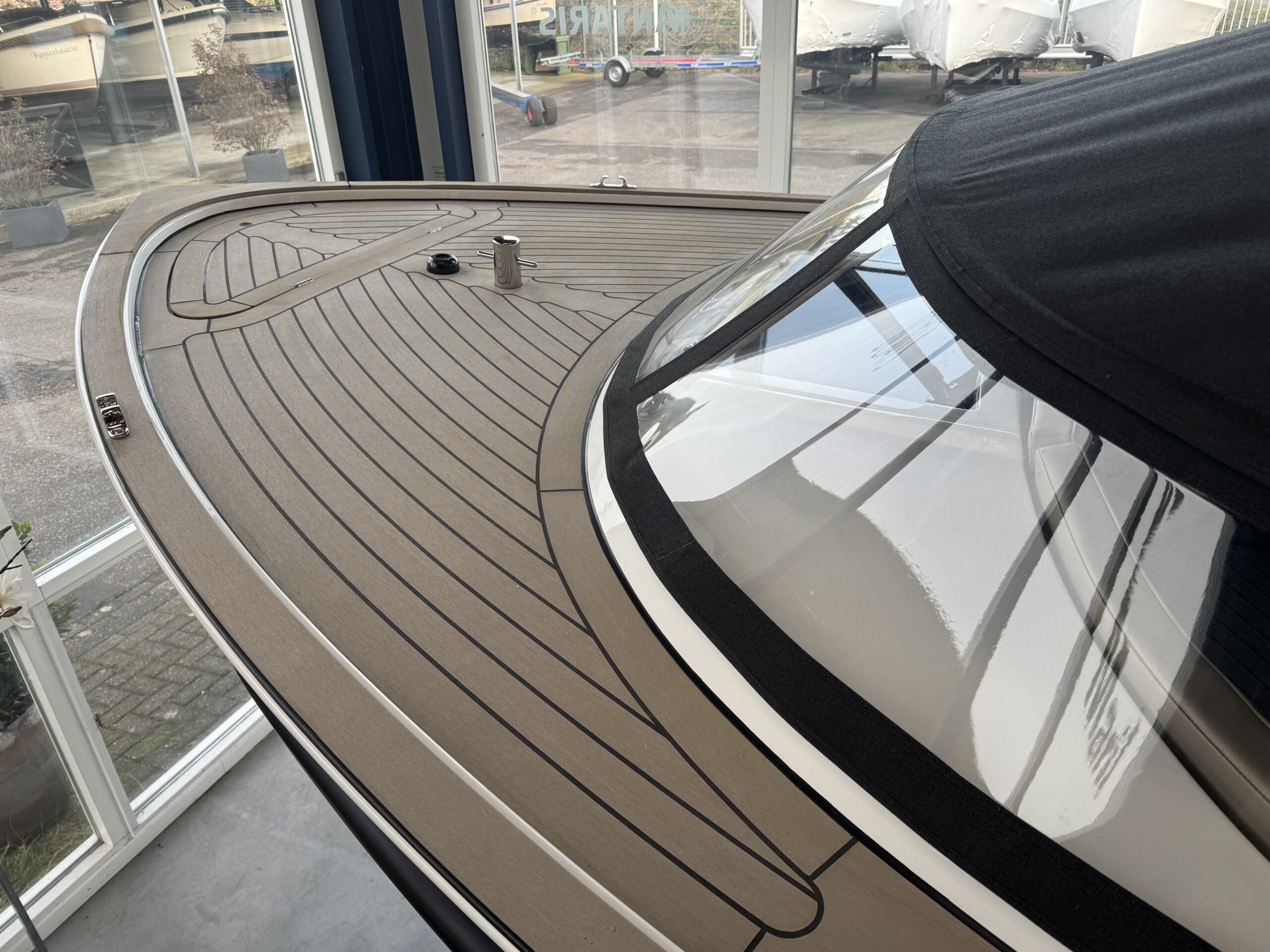 Antaris Seventy5 met een 42 pk Hybride, Kunst teak vloer met lijfhout volledig verlijmd en rondom afgekit, Kunst teak dek met lijfhout volledig verlijmd en rondom afgekit, Kunst teak tafel inclusief poot en houder, Boegschroef met joystick schakelaar, Zonnebed / 2-persoons bed voorin in de kuip, Spoelbak en buitendouche incl. waterdruksysteem en watertank ca. 40 ltr, Sportkap met windscherm in plaats van standaard buiskap, Biminitop / zonnetent inclusief hoes, Grote compressor koelkist midscheeps, Ladekast midscheeps afgewerkt met kunst teak front, Handpomptoilet voorin inclusief vuilwatertank, dekafzuigpunt en vuilwaterpomp, RVS zwaar weer steun rondom stuurconsole, RVS zwemtrap geïntegreerd in zwemplateau, RVS beschermstrip rondom zwemplateau, RVS handgreep op spiegel, RVS bekerhouders (4) met LED verlichting (blauw) naast de opstap, Ovale vlaggenstok en houder, Luxe JL Audio systeem met radio/mp3-speler, colour LCD-scherm, Bluetooth en 4 speakers, Luxe losse klokken (5) op stuurconsole, 12 volt en USB/USB-C aansluiting, 2e accu voorzien van diodebrug, Teak/RVS stuurwiel 60 cm Ø, Kussens voorzien van speciale stoffering, Kussens uitgevoerd met ruitmotief en trekstroken, Armsteun met 2 RVS bekerhouders, Hoes voor buiskap, LED kuipverlichting (6 stuks), LED instapverlichting (4 stuks) onder de instaptreden van en naar zwemplateau, Afleverpakket Vaarklaar!
