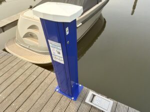 Peek Jachthaven Amsterdam heeft onlangs nieuwe aansluitingen laten aanleggen op de ligplaatsen voor elektrische boten. Ligplaatshouders kunnen deze aansluitingen eenvoudig zelf in- en uitschakelen via een handige app. De installatie is verzorgd door de firma Seijsener, gespecialiseerd in recreatietechniek, zodat alles veilig en betrouwbaar is uitgevoerd.